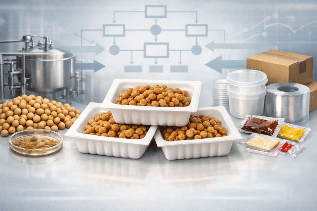 納豆のBOMを分解すると、面白い構造が見えてきます。 中身である「バルク(大豆と菌)」と、外側である「資材(容器、タレ、フィルム)」です。実はここには、全く異なる2つの「文化」が同居しています。